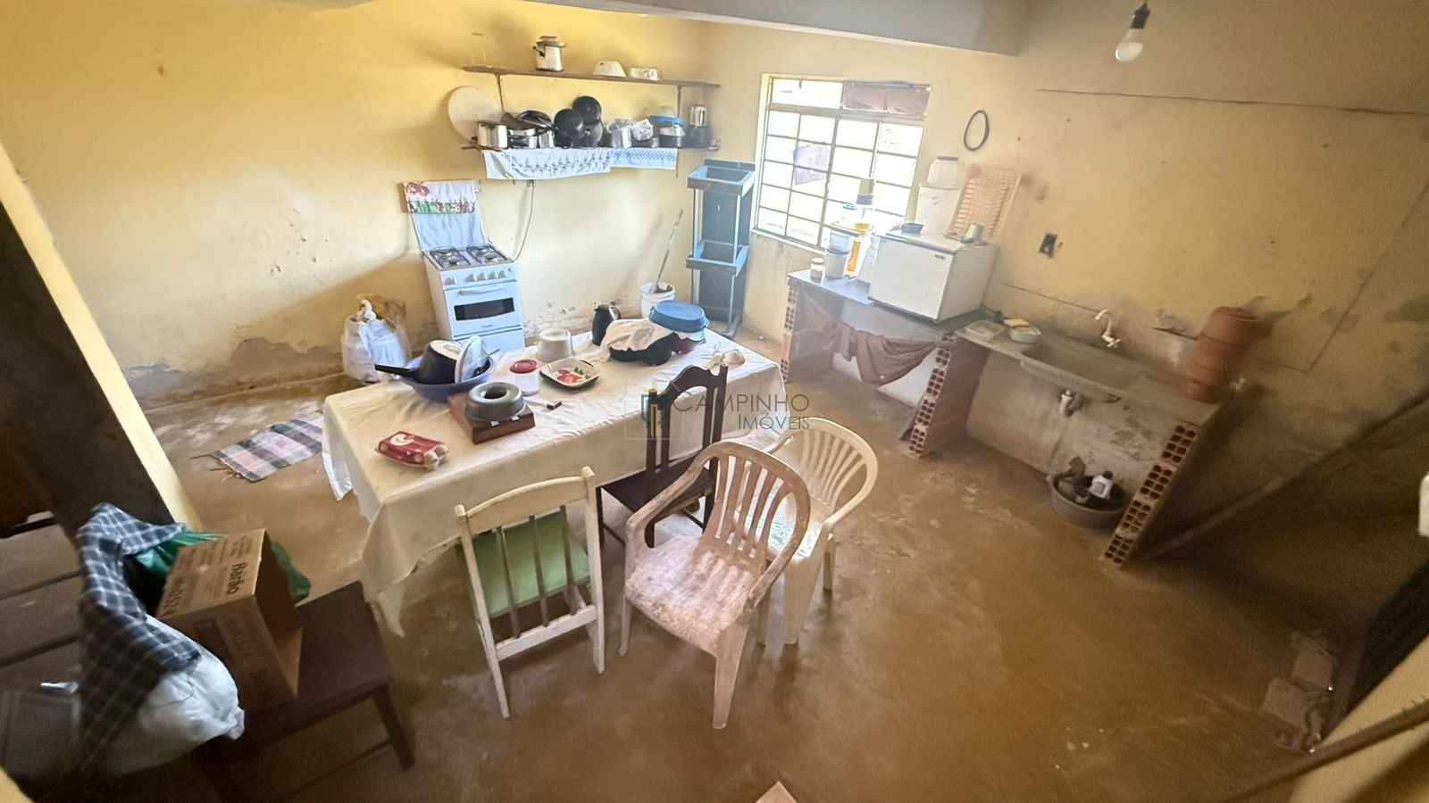 Contem 3 quartos, sala, cozinha e banheiro, área externa com fogão a lenha, galinheiro e muitos pés de frutas.
